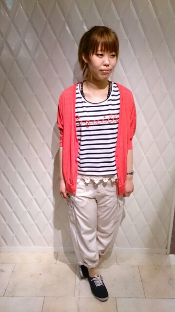 ボーダーTシャツ×ホワイトカーゴがとても爽やかですね!