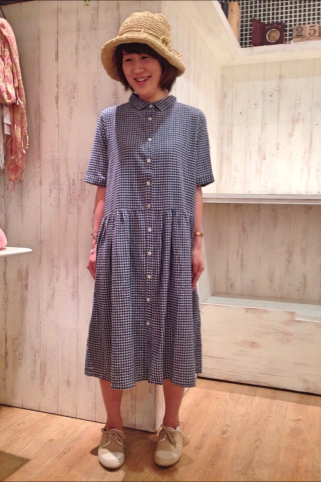 ギンガムチェックが今年らしい☆ガーゼのような綿素材なので今の時期にピッタリ!涼しく着て頂けますよ!