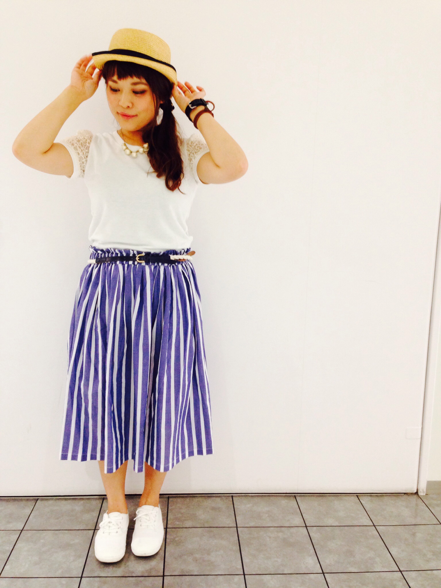 今日はストライプのスカートと合わせてガーリー