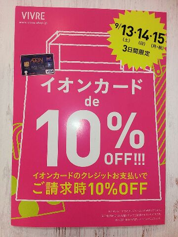 2014.09.13 - 横浜店★3日間限定イベント!! 横浜店のタカハシです! 本日より3日間限定でイオンカードのクレジットお支払で ご請求時10%OFFを開催中です!! イオンカードをお持ちでない方も当日発行ができます。(発行は10:30~17:00まで) tipでも15日まで秋物商品10%OFFを開催中です!! この3連休はお天気も良いので、散歩がてらワールドポーターズに足を運んでみてはいかがですか?! お待ちしております!!