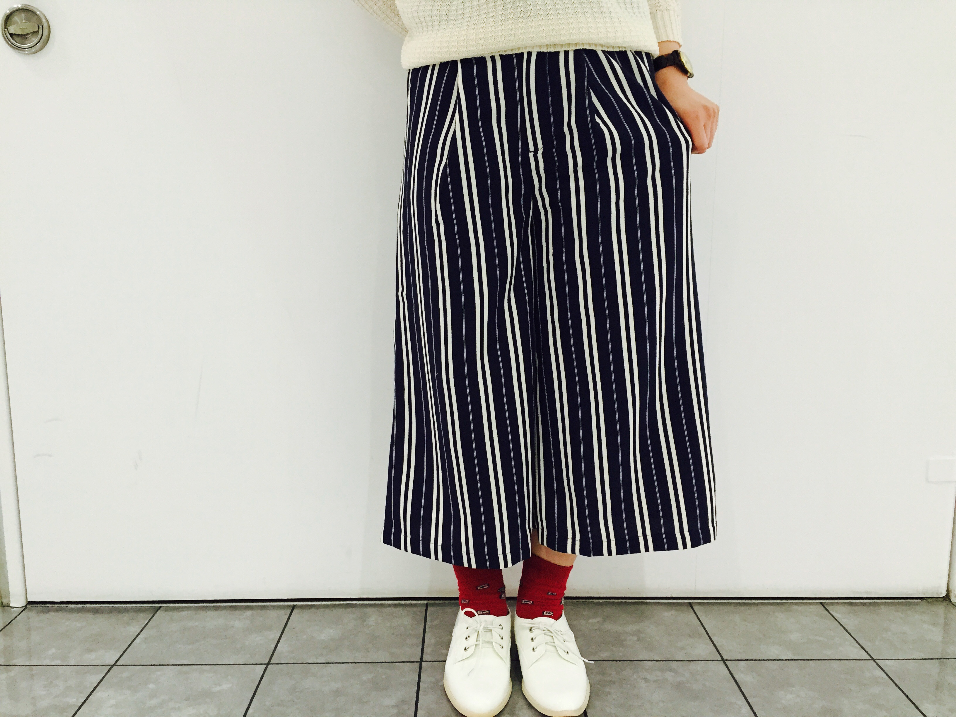 2015.03.30 - ★静岡店★ガウチョパンツ こんにちは! 静岡店清水です(^_^) 今旬なガウチョパンツが入ってきました♪ ¥4900+tax 一本は持っておきたいガウチョパンツ 158㎝の私で足首がみえるくらいです☆ お色は コン/カーキ/オフシロ ストライプは コン/オフシロ ストライプオフシロの写真を 撮り忘れてしまいましたすいません>_< 是非お店に見に来てください♫♪
