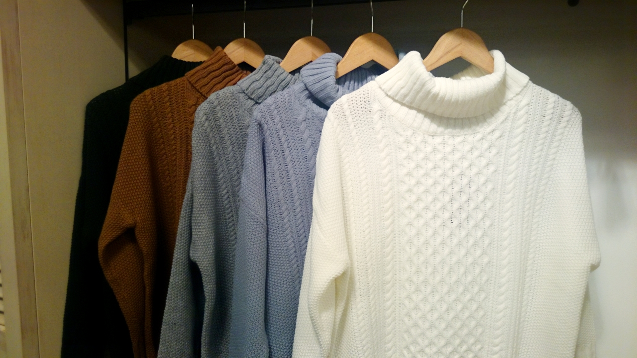 ケーブルカノコ編みタートルニット ¥5,990 →¥2,995+tax