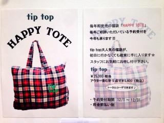TIPTOPでは、今年も福袋「HAPPY TOTE」の予約を12月1日~12月31日まで