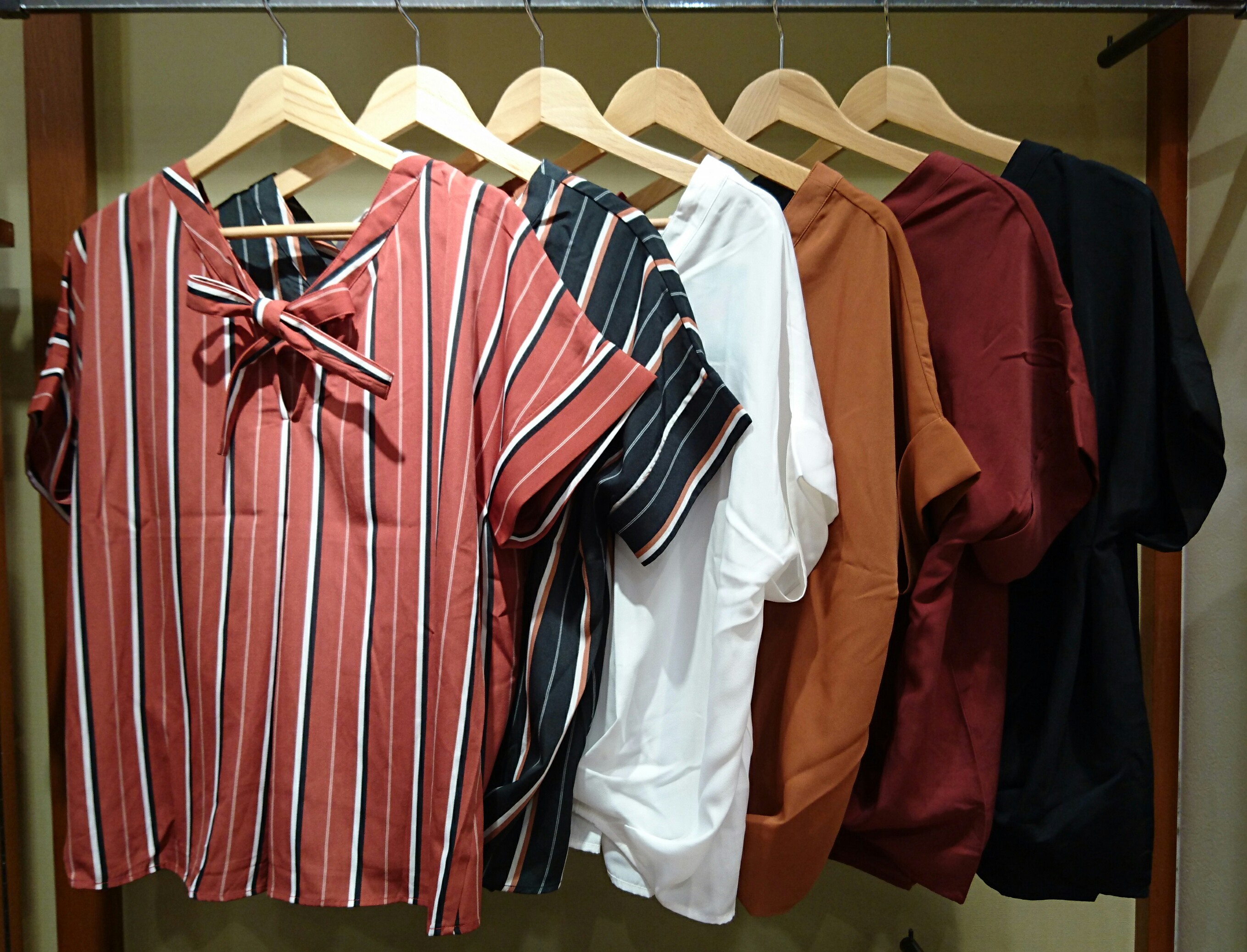 こんにちは! 夏休みも折り返し地点となりましたね(´;;`) 今回は小俣が心機一転、秋色先取りアイテムをご紹介致します♪ こちらっ! 後ろリボンVネックブラウス ¥4990+tax