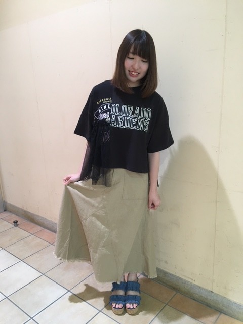 いつもtiptopのブログをご覧いただきありがとうございます! 本日は新作商品のご紹介です☆ ☆ロゴリメイク風チュール付きTシャツ ¥3990+tax → ¥2990+tax お色