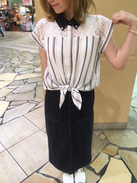 いつもtiptopのブログをご覧いただきありがとうございます☆ 本日は新作商品のご紹介です☆ 入荷して早くも大人気のシャツです☆ ☆ネックレス付レース切替え前縛りシャツ ¥4990