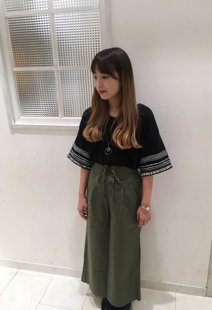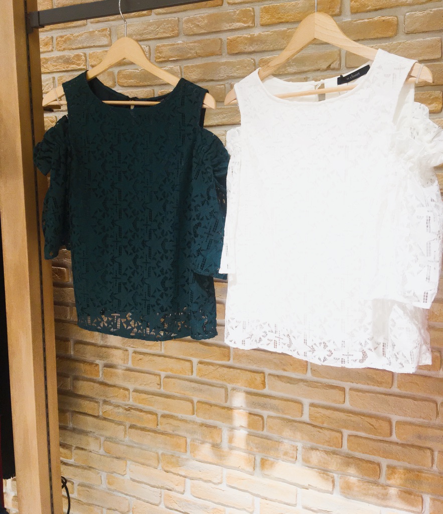 いつもtiptopのブログをご覧いただき有難うございます! 本日のスタッフコーデをご紹介します☆ ☆星柄レースオープンショルダーブラウス ¥3990+tax カラー / オフシ