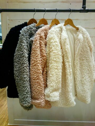 皆様こんにちは、熱田店です(^^) いつもブログご覧いただきありがとうございます! 本日ご紹介しますアイテムは… ▽裏地付ボアノーカラーコート▽ もこもこふわふわとしたボア素材 見