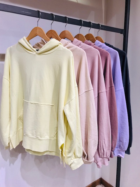 こんにちは! 今回は新しく入った、ピグメント裏毛BIGパーカーのご紹介です(^^)/ やさしいパステルカラーで春先取りです✿✿✿ COLOR→イエロー、