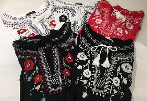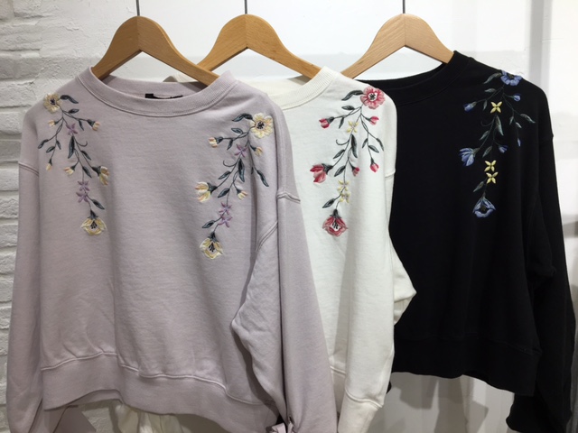 こんにちは! 国分寺店から新作商品のご紹介です♪ 刺繍ブラウス各色¥5,990+tax→¥3,990+tax 胸元と袖の部分に刺繍の入ったブラウス
