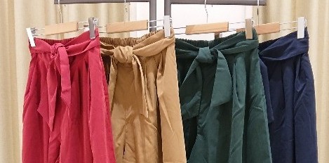 こんにちは!スタッフの大橋です! こちらのリボンワイドスカンツは、生地もカラーバリエーションも秋仕様となっています!! 今の時期は白いTシャツなどシンプルなトップスを合わせて着たり