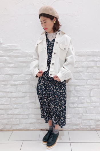 みなさんこんにちは、鈴鹿店です♪ 本日は春にぴったりな小花柄のワンピースのご紹介です! 今回はデニムジャケットと合わせたので大人っぽさもありつつ、 カラ
