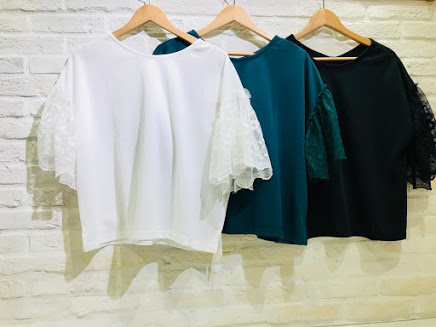 お買い得アイテム入荷しました!! チュール刺繍袖2WAYプルオーバー ¥1990+tax カラーはシロ、クロ、ダークグリーンの3色です。 袖のレースが可愛いシンプルなデザインです。