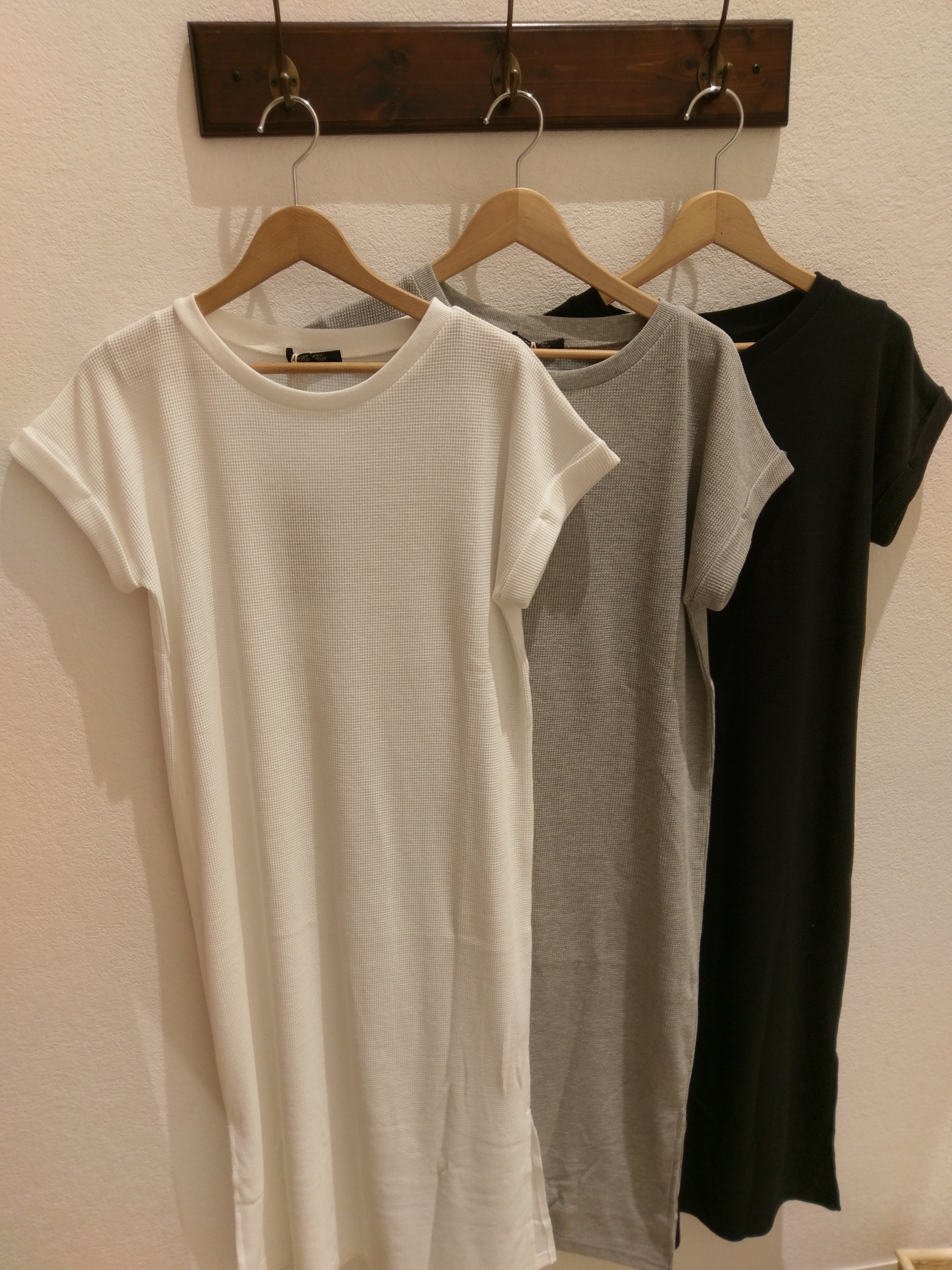 こんにちは! 高崎店からおすすめ新作商品をご紹介致します! ◎ワッフル裾スリットロングワンピース ¥1990+tax カラ