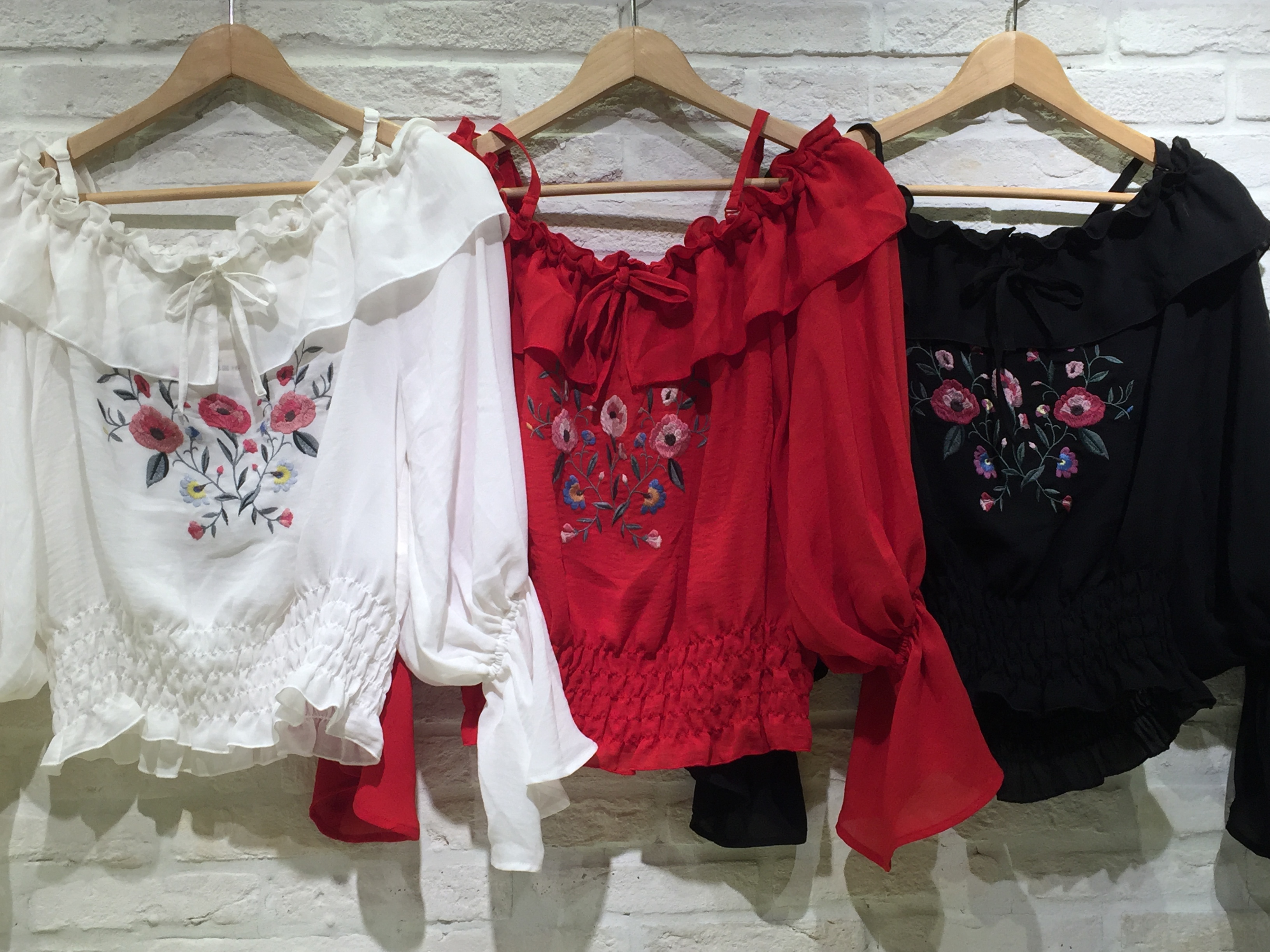 みなさま、こんにちは! 今回は入荷したばかりの花刺繍フリルブラウスのご紹介です! 人気の刺繍ブラウスに新作が登場しました! トレンドのオフ