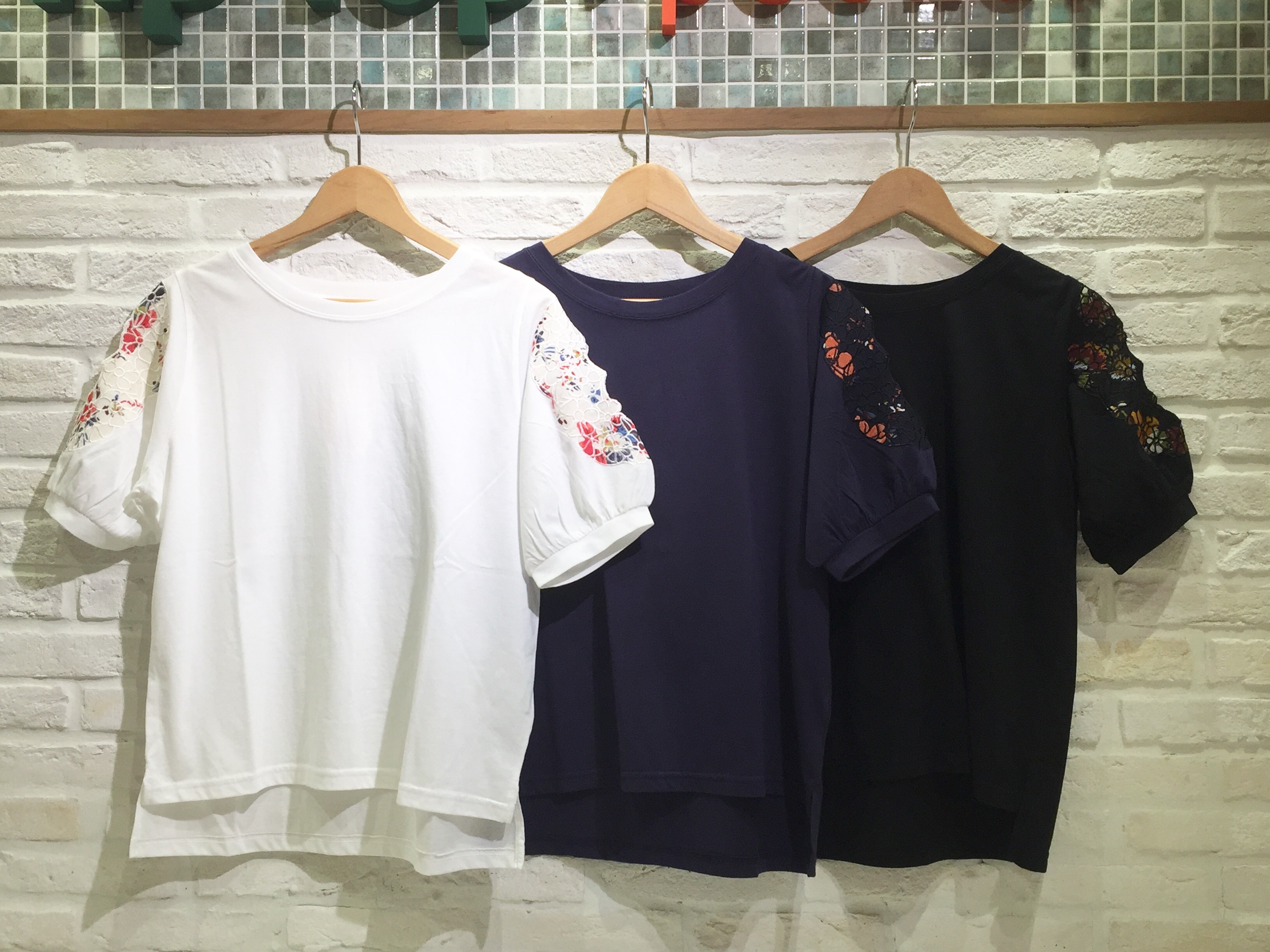 みなさま、こんにちは! 今回は今シーズン人気の 肩カットワーク花柄プルオーバーをご紹介致します! 肩が少し見えるデザイン♪ 夏らしいお花も可愛いです! 着てみると・・