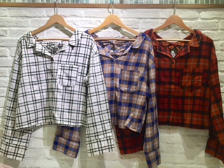 みなさま、こんにちは!! 高崎店から本日入荷したばかりのアイテムのご紹介です!! こちら♪ 後ろリボンチェック開襟チェックシャツ ¥499
