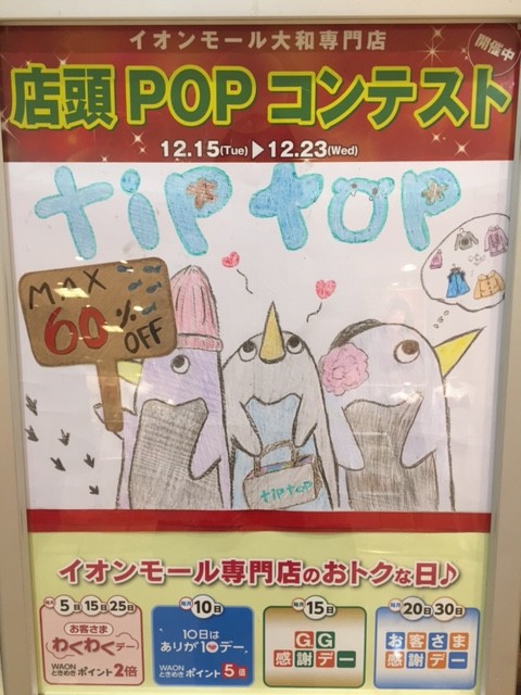 こんにちは!大和店 横田ですヽ(^o^)丿 本日12/15~12/23までイオンモール大和 専門店では 店頭POPコンテストを開催しており