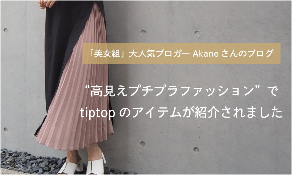 集英社のファッション誌「Marisol」(マリソル)の読者ブロガー 「美女組」Akaneさんの人気ブログ「高見えプチプラファッション」にて、 tiptopの好評アイテム サイドプリ