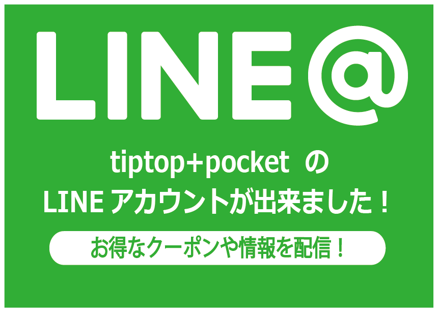 tiptop+pocketのLINEアカウントが出来ました。 最新情報やお友達限定クーポンなどを配信します! 今なら新規ご登録で4/1から使えるお得なクーポンプレゼ